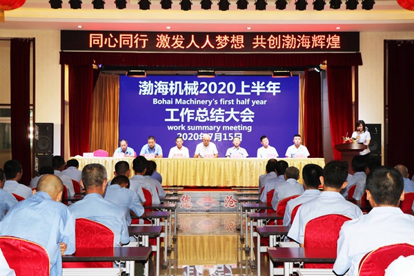 河北滄州渤海機械有限公司在公司多功能會議廳召開了2020年度上半年工作總結會議。公司董事長、總經理、各部門管理人員及其公司全體員工參加了此次會議。